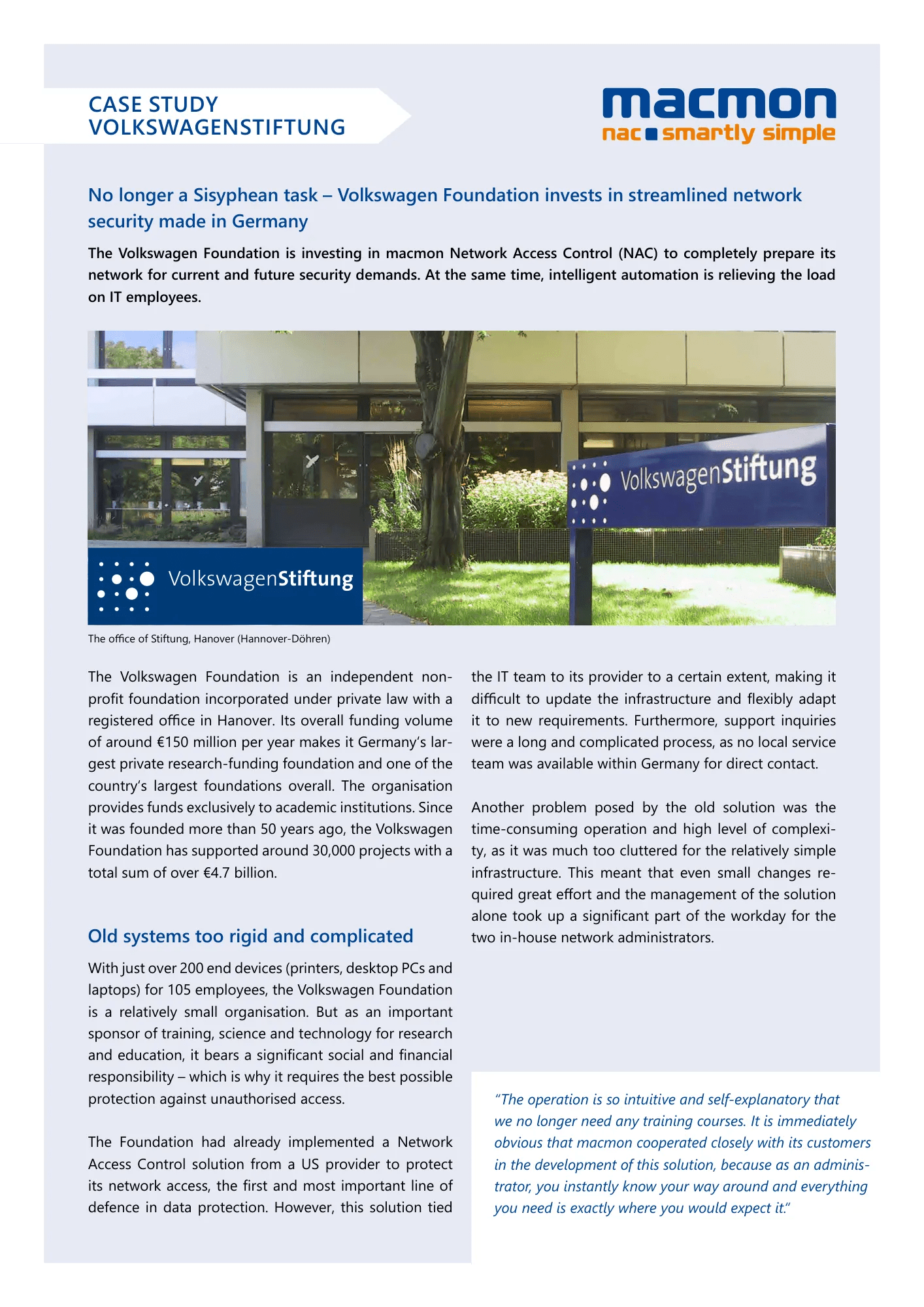 La Fondation Volkswagen investit dans une sécurité réseau rationalisée made in Germany