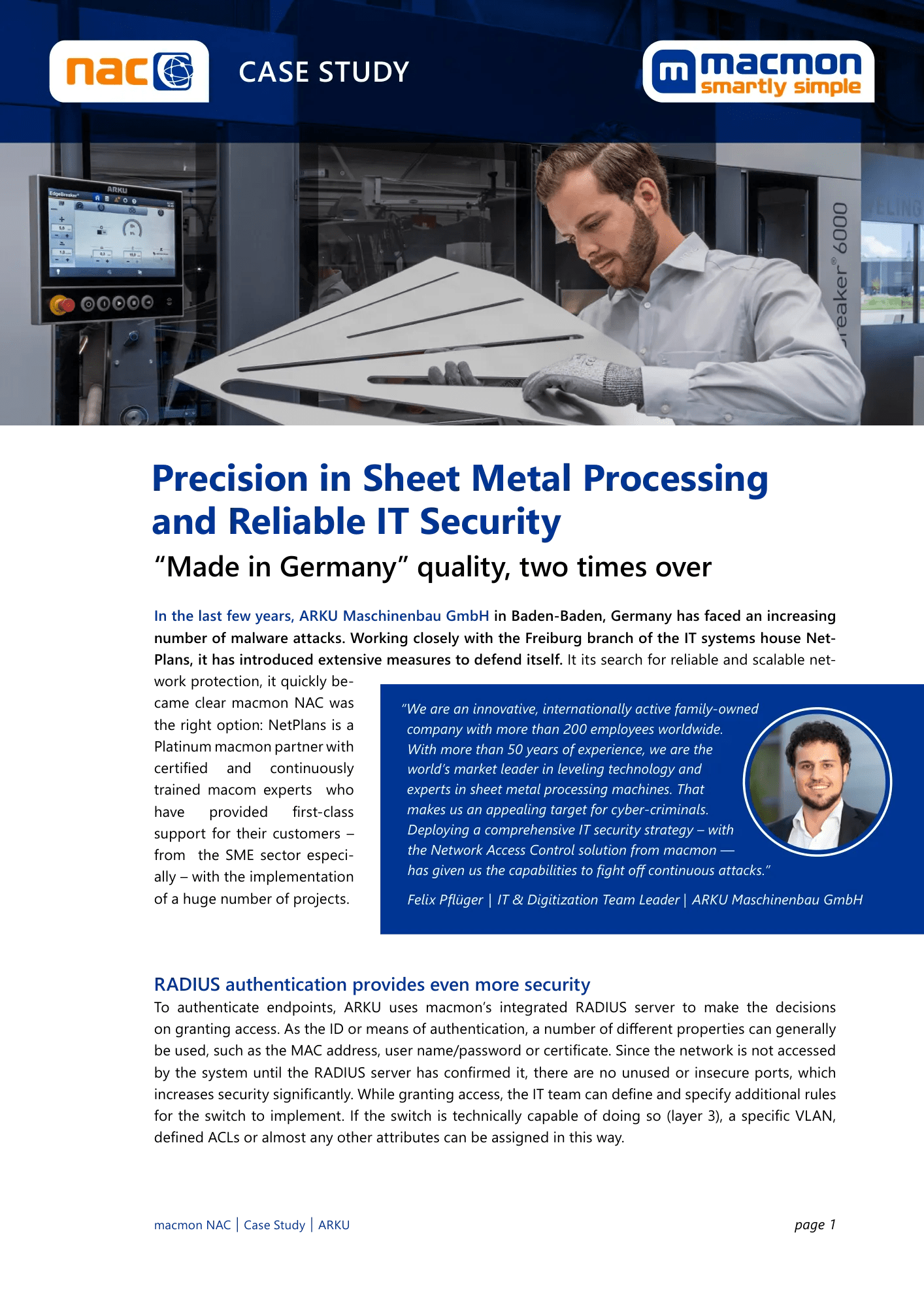 Précision dans l'usinage des tôles – sécurité informatique fiable pour la construction de machines avec macmon NAC.