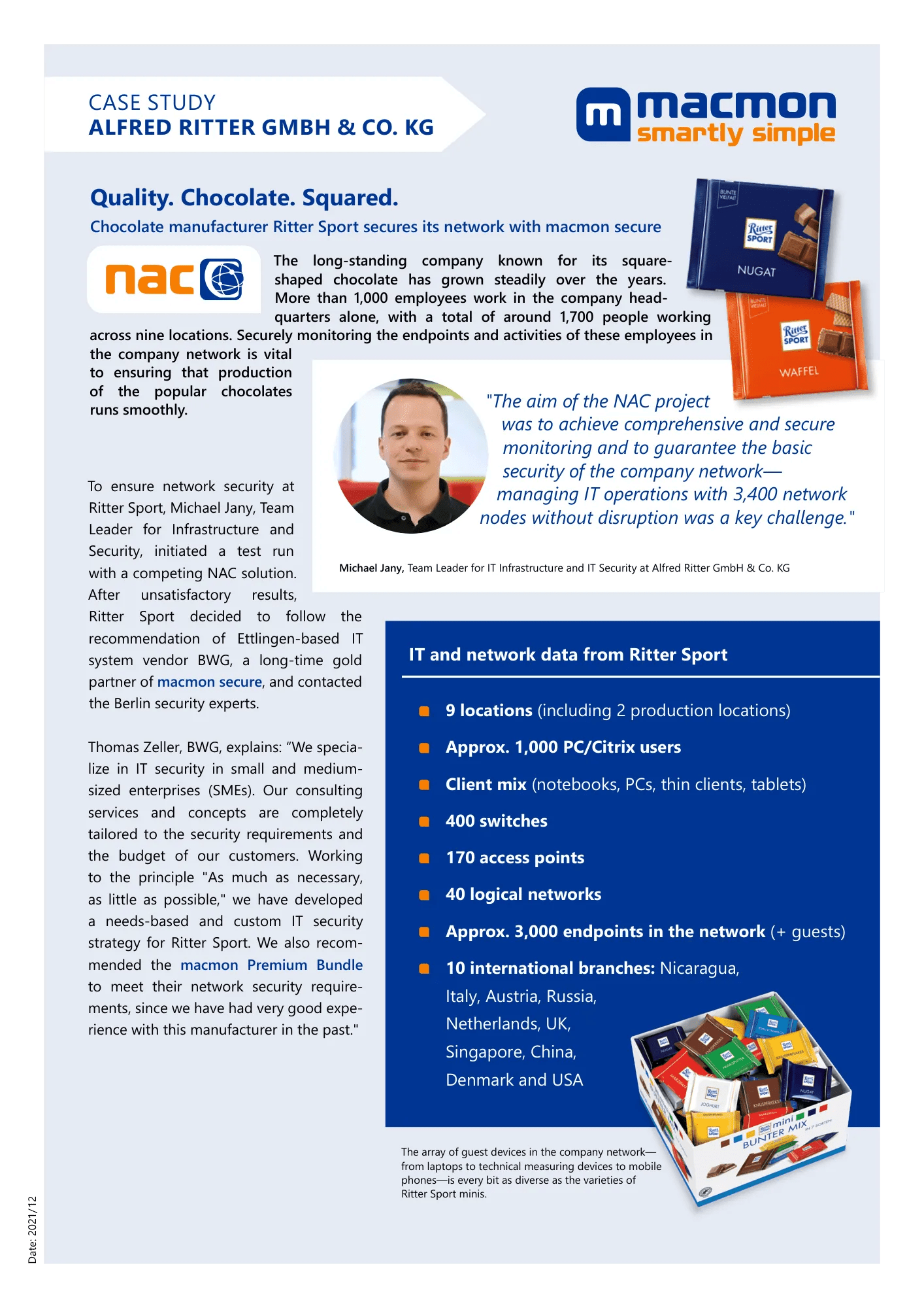 Un fabricant de chocolat sécurise son réseau complexe et historiquement développé avec macmon Network Access Control.
