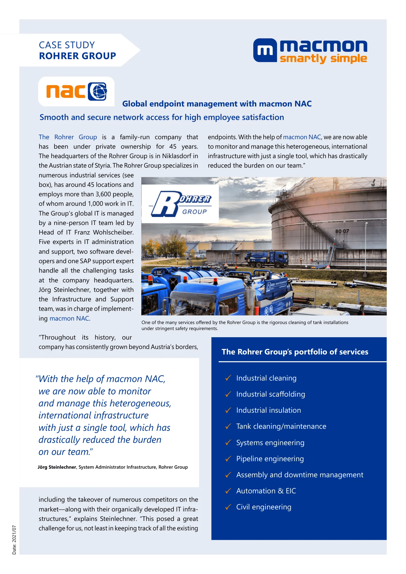 Un fournisseur de services industriels met en œuvre une gestion globale des terminaux avec macmon NAC.